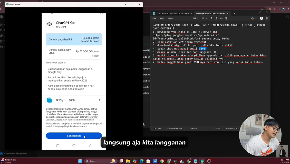 Perusahaan teknologi besar sering memberikan harga khusus atau promo agresif di negara-negara berkembang dengan populasi besar seperti India untuk penetrasi pasar. Di Indonesia, mungkin kita disuruh bayar harga normal. Tapi di India, saat artikel ini dibuat, sedang ada promo atau glitch sistem yang memungkinkan pengguna baru mendapatkan akses ChatGPT Go tanpa biaya sepeser pun untuk tahun pertama.
